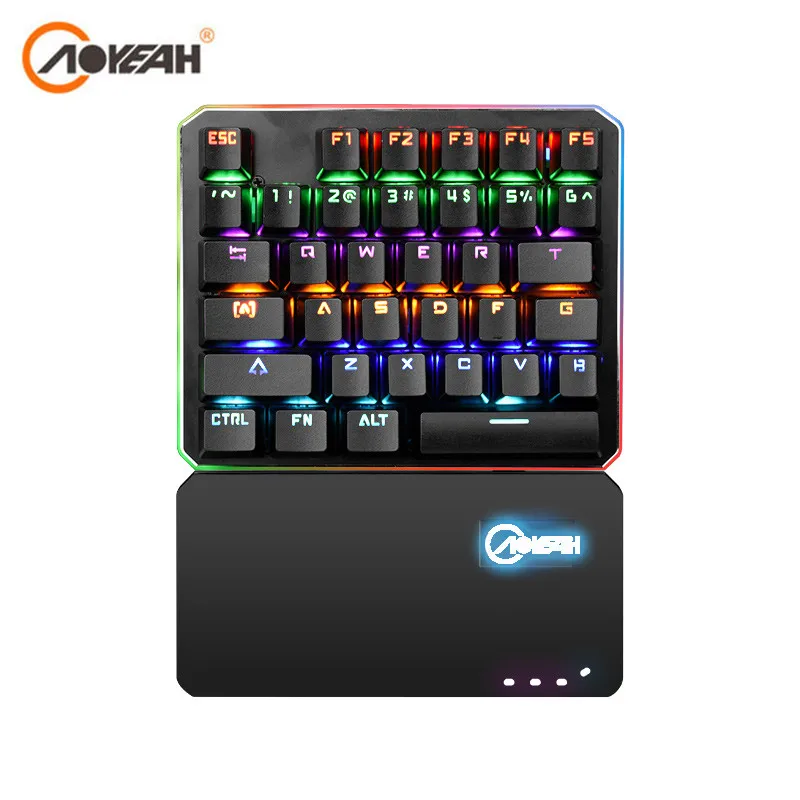 Goede Koop Aoyeah Een Enkele Hand Mechanische Toetsenbord USB Bedraad RGB Gaming Toetsenbord 35 toetsen Toetsenbord Ergonomisch voor overwatch Teclado Gamer PC Goedkoop
